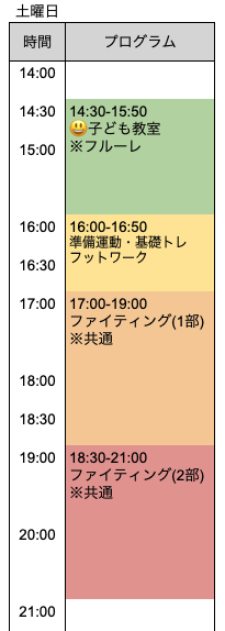 毎週一回、決まった曜日に確実に練習してスキルアップを目指すプランです。